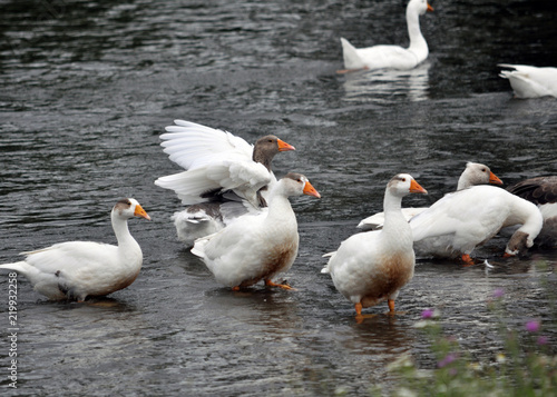goose, domestic, water, water bird, bathing, river, landing, herd, swim, wing, feather, white, nature, background, natural, brown, animal, bird, summer, fauna, goose, day, beautiful, green, colours, cygnet, black, closeup, cute, fresh, fun, group, rural