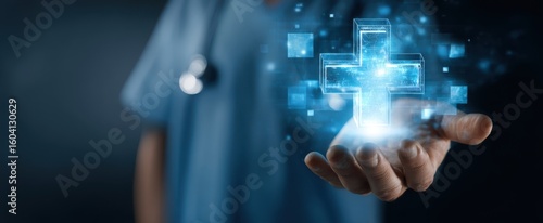 health care, technology, medicals, cross, innovation, digital, doctor, hand, blue, health, futuristic, hologram, patient, service, treatment, care, hospital, wellness, nursing, science, concept, safety, medicine, support, professional, datum, glowing, communication, interface, virtual, research, therapy, assistance, diagnosis, clinic, network, information, banner