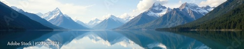 The grandeur of mountains reflected on a quiet lake, serenity, landscape