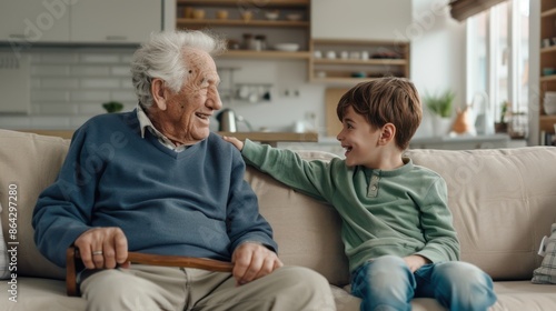 children, elderly, friendship, man, home, love, happiness, children, family, senior, smiling, grandfather, young, relaxation, boy, joy, grandson, conversation, closeup, laughing, indoor, couch, cosy, togetherness, generation, lifestyle, room, expression, affection, care, old, human relationships, parenting, bonding, comfort, interaction, living, embracing, sharing, homelike, trusted, connecting