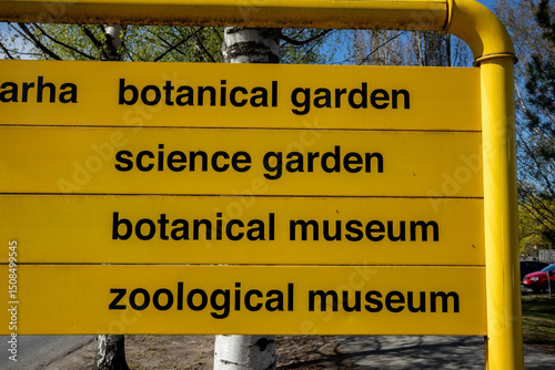 plant, botanical, garden, science, zoological, museum, nature, signs, gardening, environment, park, direction, entrance, greenhouse, outdoors, arboretum, background, landmark, summer, travel, conservation, education, guidance, guide, information, signpost, yellow