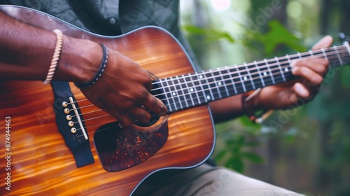 photo, people, music, adult, horizontal, one person, playing, young adult, color image, guitar, adults only, musician, sitting, casual clothes, one man only, string instrument, indoor, smiling, guitarist, avocation, musical instrument, young men, lifestyle, hobby, concentration, happiness, acoustic guitar, fun, studio shot, looking away, enjoyment, male, man, relaxation, copy space, front view, joy, learning, skill, eyeglass, home interior, full-length, nature