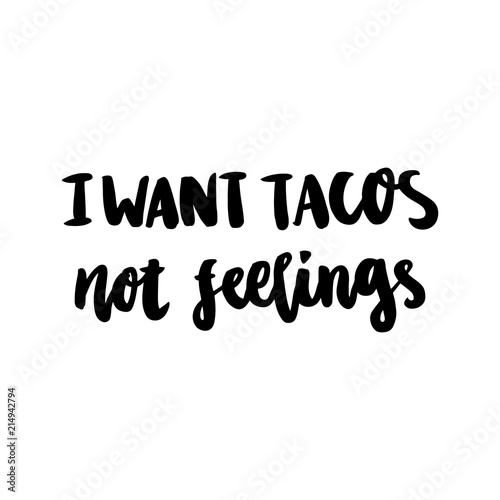 The hand-drawing fun inscription: I want tacos not feelings, of black ink. It can be used for menu, sign, banner, poster, and other promotional marketing materials.