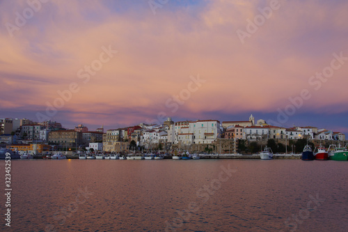 The harbor with fishing boats and in the background the old village, Termoli, Molise, Italy