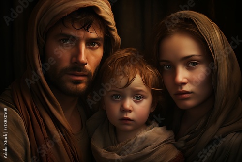 The holy family. jesus, mary, and joseph in a sacred portrait of divine love, faith, and unity