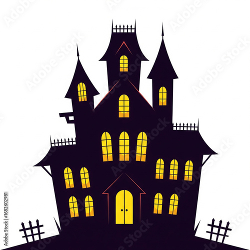 haunted, house, luxury home, victorian, architecture, skittish, glowing, window, night, dark, ominous, creepy, gothic, old, abandoned, mysterious, halloween, decoration, model, miniature, building, structure, silhouette, eerie, shadow, light, tower, turret, chimney, porch