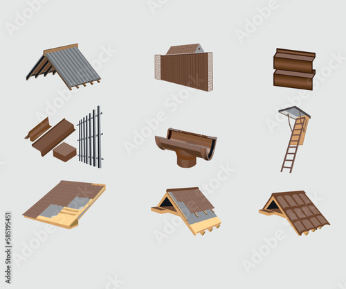 roof, facades, stair, house, wooden, home, set, illustration, object, furniture, icon, wood