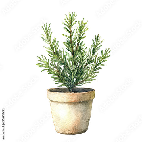 plant, pot, green, leaf, foliage, stem, herb, rosemary, container, botanical, garden, illustration, watercolor, artwork, detail, natural, isolated, small, indoor, cultivation, growth, flourish, delicate, sprig, sprig, texture, vibrant, life, organic, nature, agriculture, potted, decorative, fresh, elegant, simple, background, studio, closeup, design, element, artistic, drawing, realistic