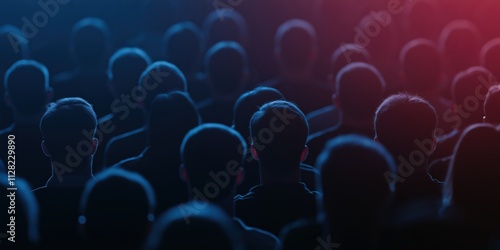 The image depicts silhouettes of a large audience facing forward, enveloped in dramatic lighting, symbolizing unity, anticipation, and shared experience in an engaging event.