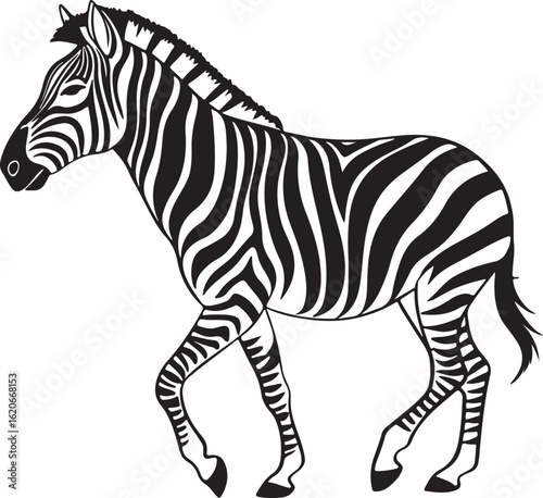 The image features a zebra positioned centrally, highlighting its unique striped pattern against a neutral background, Zebra vector style silhouette image