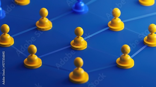 The image features yellow and blue game pieces arranged on a blue background, symbolizing connections in a network or social interaction.