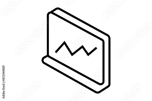 The image shows a 3D isometric laptop icon. The laptop screen displays a simple zigzag line graph, symbolizing data analysis, statistics, or business performance.
