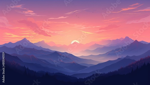 beautiful, mountain, landscape, vibrant, sunset, sky, deep, pink, lighter, forest, climb, bird, scene, cloud, flight, colours, hike, cover, zen, view