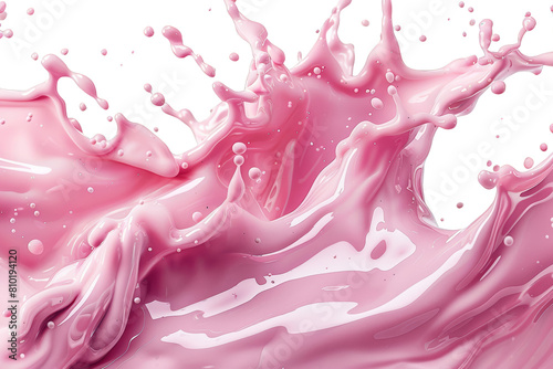 The image shows a pink liquid splashing. The liquid is smooth and creamy.
