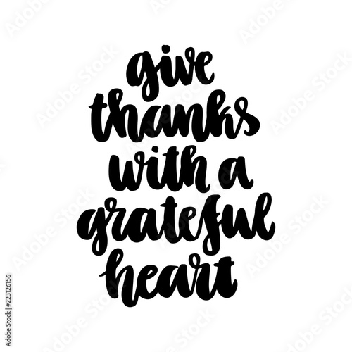 The inspiration quote: Give thanks with a grateful heart, hand-drawing of black ink on a white background. It can be used for a sticker, patch, invitation card, brochures, poster etc.