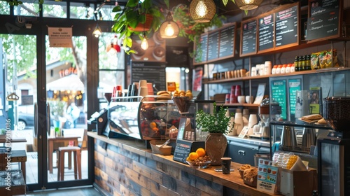 interior, stylish, bright, modern, design, natural light, plant, greenery, urban, cosy, inviting, counter, menu, hip, decoration, ambience, barista, hot drink, hospitality, shop, contemporary, seating, lifestyle, leisure, wooden, establishment, decor, trendy, business, social, comfort, relaxation, culture, client, service, lighting, lamp, atmosphere