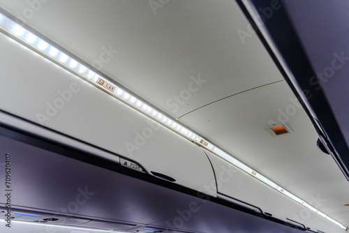 signs, aircraft, airline, aeroplane, aerodrome, asia, baggage, board, boarding, business, cabin, clean, comfort, comfortable, commercial, compartment, cost, design, economy, empty, flight, fly, indoor, inside, interior, journey, baggage, modern, overhead, passenger, people, plane, propeller, protect, safety, seat, suitcase, technology, tour tourism, transport, transportation, travel, traveler, tray, vacation