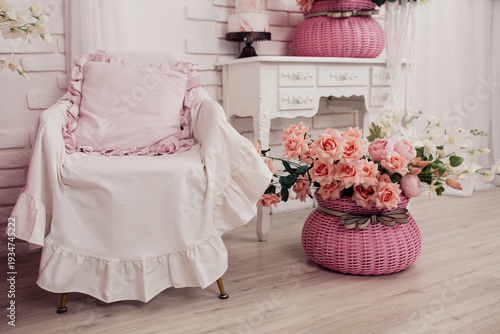 pink, flower, decor, brick wall, bouquet, apartment, armchair, background, bow, brick, brightness, children, colorfulness, dorm, event, fabric, fashion, glamour, gloss, holiday, house, innocence, interior, molding, mood, mother's day, no people, pillow, psychology, recreation area, relocation, renovation, shape, spring, student, style, summer, textile, vintage, youth