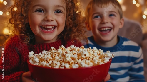 children, popcorn, joy, smile, together, family, fun, friendship, cosy, home, motion picture, snack, celebration, holiday, entertainment, laughter, happiness, adorable, warmth, childhood, innocence, festive, red, bowl, bright, indoor, evening, cute, delightful, cheerful, gathering