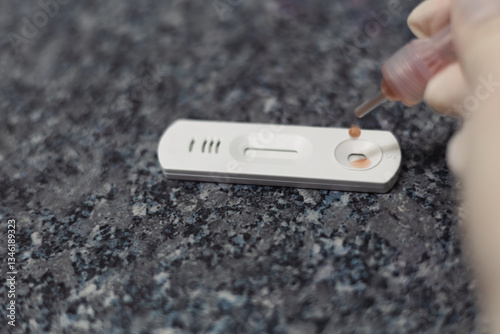 The laboratory assistant drips a blood sample for an express test cashier for the diagnosis of viral diseases. Express analysis of viral diseases on the table in the laboratory.