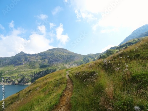 The "Laghi Lakes", in the Orobie Alps: A small valley with pastures, woods and lakes Among the Italian Mountains, near the town of Bergamo - August 2019.