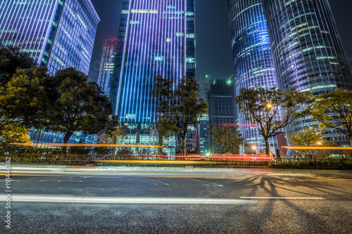 the light trails on the modern building background.