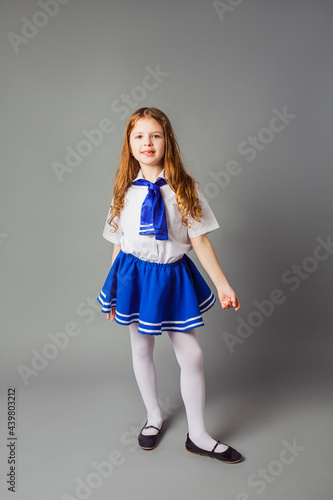 children, sailor, children, portrait, white, cute, person, young, childhood, happy, caucasian, joy, happiness, cheerful, smile, face, fun, sea, studio, suit, little, people, adorable, grey background, joyful, beautiful, uniform, pretty, lovely, full-length, funny, positive, concept, seaman, affective, schoolchild, freckle, looking, female, play, standing, schoolgirl, costume, playful, small, lifestyle, clothing, 1, girl