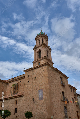 The majestic former collegiate church of Santa Maria la Mayor in Rubielos de Mora, Teruel, with its bell tower and dome