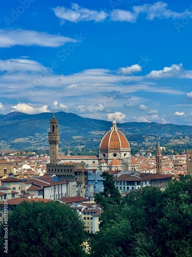 The majestic view of the Duomo in Florence, Italy, where the iconic cathedral's Renaissance architecture and towering dome dominate the cityscape, symbolizing the rich cultural heritage and artistic l