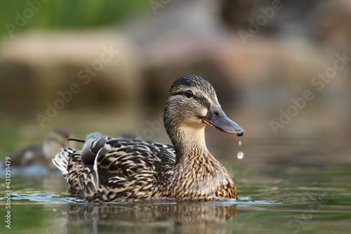 The mallard or wild duck (Anas platyrhynchos) feline feeding on the lake.
