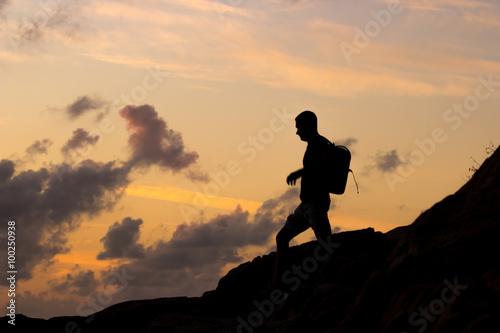 air, alone, backpack, cliff, cloud, contemplation, cover, daytime, depth, ease, fall, fog, guy, headway, height, landscape, light, lighting, man, mountain, nature, observer, panorama, precipice, relief, rock, route, seclusion, sky, stillness, topography, travel, traveler, tree, vacation, walk, weather