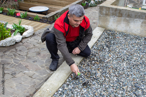 man, garden, care, springtime, home, person, gardener, hobby, plant, male, tool, flower, lifestyle, working, dig, backyard, caucasian, occupation, bush, growing, floral, spring, enjoyment, maintenance, one person, yard, active, looking, flowerbed, hand, leisure, patio, ornamental, retired, closeup, casual attire, house, flowerpot, day, gardening, woman, nature, farmer
