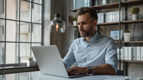 business, office, man, technology, professional, work, hand, computer, employee, person, indoor, laptop, typing, working, shirt, businessman, remote, desk, corporate, workplace, job, serious, window, entrepreneur, male, manager, equipment, modern, executive, productivity, sharpened, project, formal, career, occupation, company, businessperson