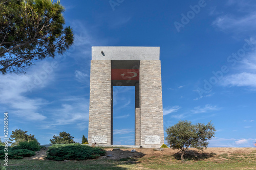 architecture, tower, sky, stone, building, historical building, church, travel, blue, old, ruin, wall, ancient, gate, history, castle, house, landscape, window, brick, summer, bell, landmark, greek, memory, traditional, flag, gallipoli, memorial, turkey, war, turkish