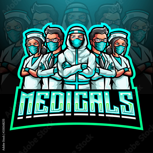 The mascot esport logo of the medical team fighting the corona virus