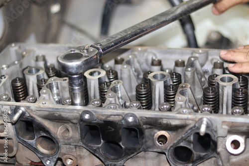 The mechanic is checking the engine.