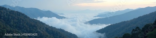 The misty veil lifts to reveal a hidden valley, mountain, fog, scenery