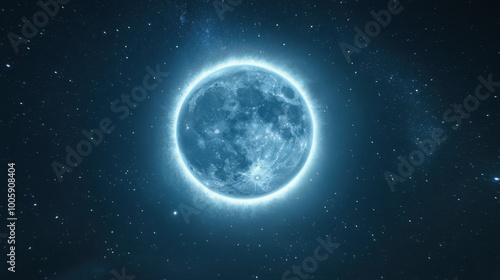 The Moon surrounded by a halo, glowing brightly in a clear night sky, creating an enchanting and mystical atmosphere
