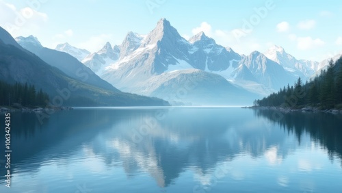 The mountains are reflected in the water