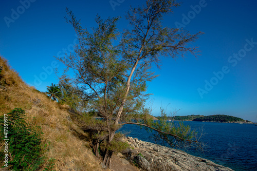 The natural background of the morning light rising in the middle of the sea and surrounded by mountains, cool breezes, the beauty of the ecology of the tourist attractions.
