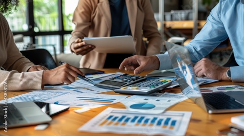 collaboration, teamwork, finance, meeting, office, technology, business, desk, laptop, group, hand, workplace, planning, brainstorming, professional, paper, tablet, table, working, indoor, corporate, economy, discussion, research, datum, people, suit, analysis, chart, document, calculating machine, cooperation, communication, graph, consultation, report, management, businessperson, strategy, financial, productivity, project, analysing