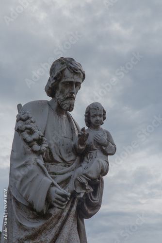The old statue of St. Joseph with Jesus in his arms at the church in Sadow near Lubliniec in Silesia