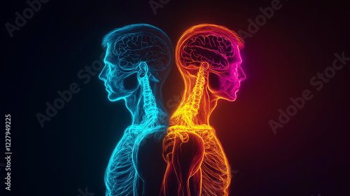 The outline of a healthy human body and a sick human body. Health. Nutrition. Dietary supplements. Biohacking