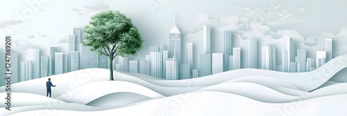 The person who knows. Tree, Achieve sustainable growth, World Environment Day. White eco urban city and nature landscape background paper art style.