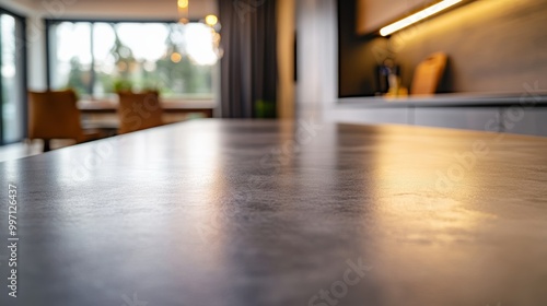 concrete, countertop, modern, kitchen, minimalistic, design, warm, lighting, roomy, layout, contemporary, decor, interior, home, blurred, background, overhead, view, sleek, surface, commercial, dining, area, improvement, stylish, cosy, atmosphere, renovation, aesthetic, material, trend, open, space, architectural, detail, functional, elegant, bright, inviting, environment