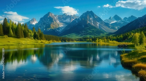 lake, mountain, nature, landscape, scenery, water, forest, tree, sky, blue, green, scenic, peaceful, tranquil, beauty, mountain, alpine, wilderness, outdoors, summer, cloud, clear, daylight, environment, horizon, natural, view, sunlight, calm