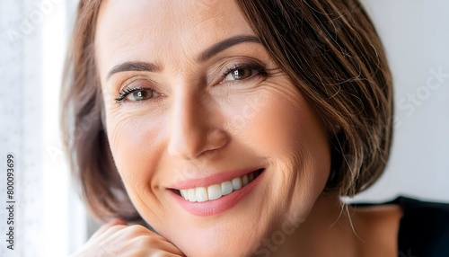 closeup, smiling, middle-aged, woman, camera, toward, happy, close, view, cheerful, lady, facing, delighted, pleasant, joyful, content, smile, face, person, people, beauty, 1, closeup, eye, happiness, looking, expression, head, teeth, casual attire, hair, model, cute, skin, natural, fashion, professional, old, older, kind, artificial intelligence, elegant, expert