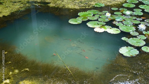 photo, color image, horizontal, duck pond, water, nature, outdoors, no people, tranquil scene, fish, plant, swimming, calmness, travel destination, carp, day, summer, travel, water lily, relaxation, animal, animal themes, beauty, botany, flower, leaf, orange color, koi carp, awe, brazil, california, canada, curve, defocused, discovery, elegance, enjoyment, growth, insect, landscaped