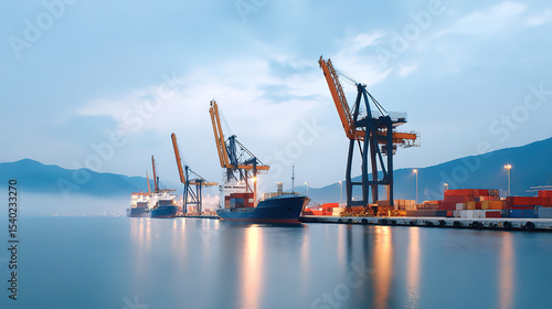 dock, port, shipping, freight, maritime, transport, trade, tied-up, ocean, outdoors, harbor, waterfront, water, cute, ship, cargo, container, economy, cargo ship, night, illustration, nobody, sky, modern, industry, prosperity, business, loading, sea, crane, transportation, boat, vessel, harbor, export, industrial, unloading, logistic
