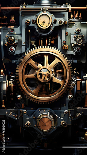 the power and precision of a big mechanical equipment, gears turning and pistons pumping perfectly.